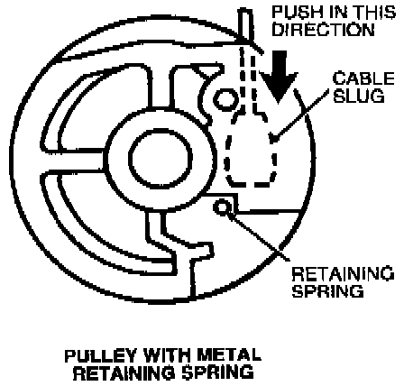 5. Remove speed control actuator cable slug from speed control servo pulley. Gently push actuator cable slug past retaining spring using a small screwdriver.