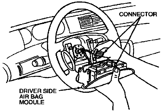 6. Disconnect air bag module electrical connector from air bag sliding contact connector at the driver side air bag module.
