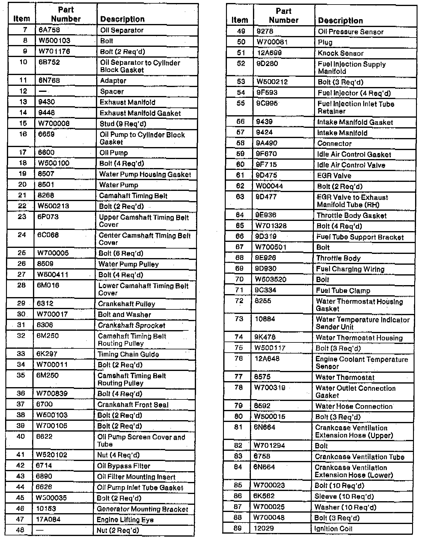 Mystique L4-122 2.0L DOHC VIN 3 SFI