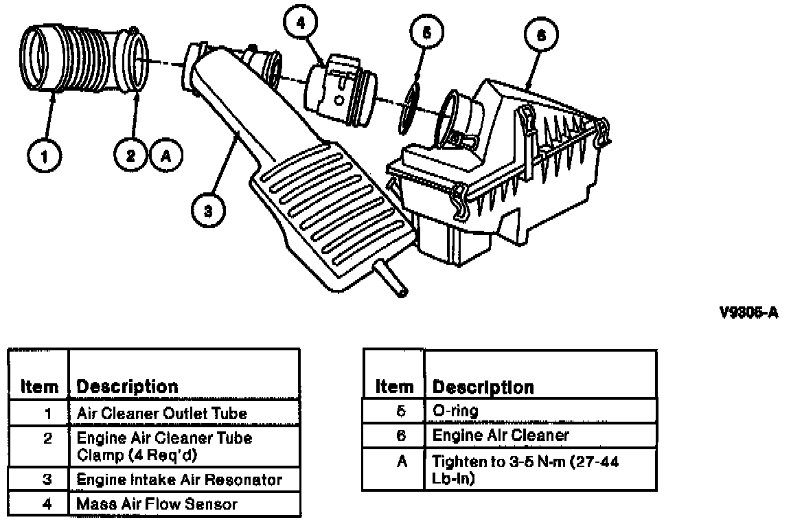 3. Install ACL outlet tube and engine intake air resonator. Tighten engine air cleaner tube clamps to 3-5 N.m (27-44 lb in).