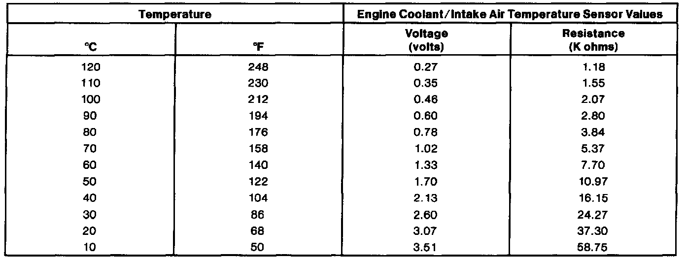 - Voltage values were calculated for VREF = 5.0 volts. These values can vary 15 percent due to sensor and VREF variations.