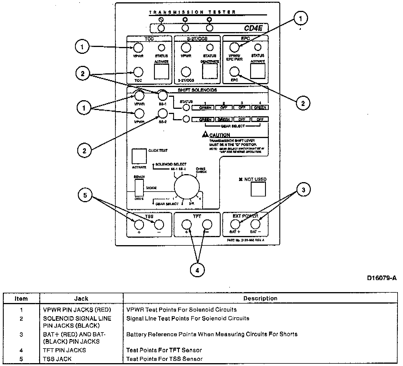 2. Solenoid (TCC, EPC) Signal Line Pin Jacks (black): Signal line test points for solenoid circuits.