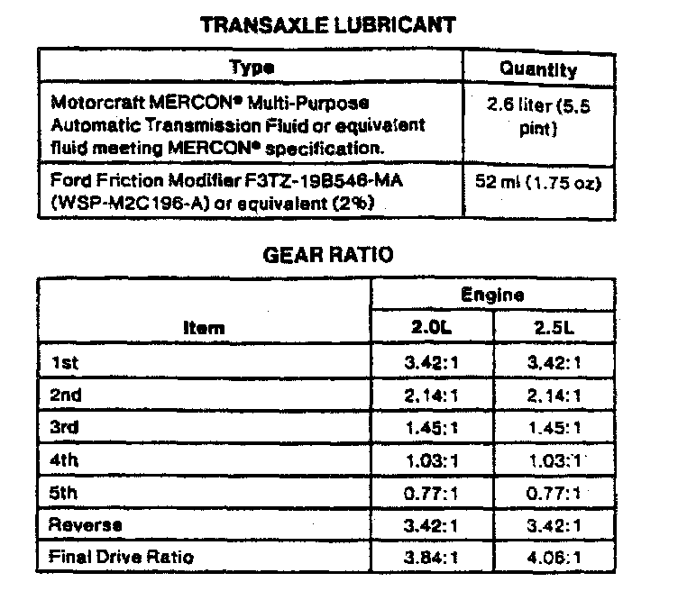 MTX 75 5-spd M/T, Gear Ratios (Contour/Mystique):