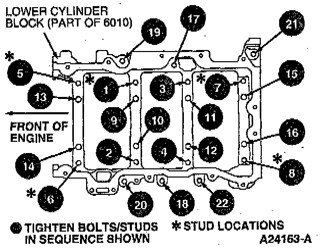 7. Tighten lower cylinder block to upper cylinder block retaining bolts in sequence, as follows: