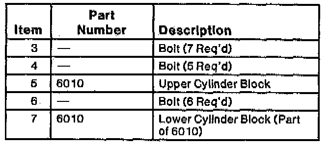 Do NOT lubricate lower cylinder block to upper cylinder block retaining bolts.