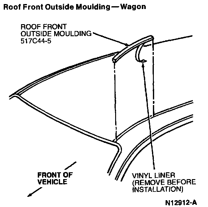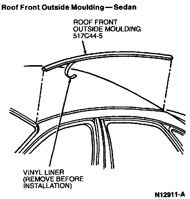 5. Tuck front end of the moulding under the windshield seal and position the moulding fore-aft flush to roof/bodyside vertical wall.