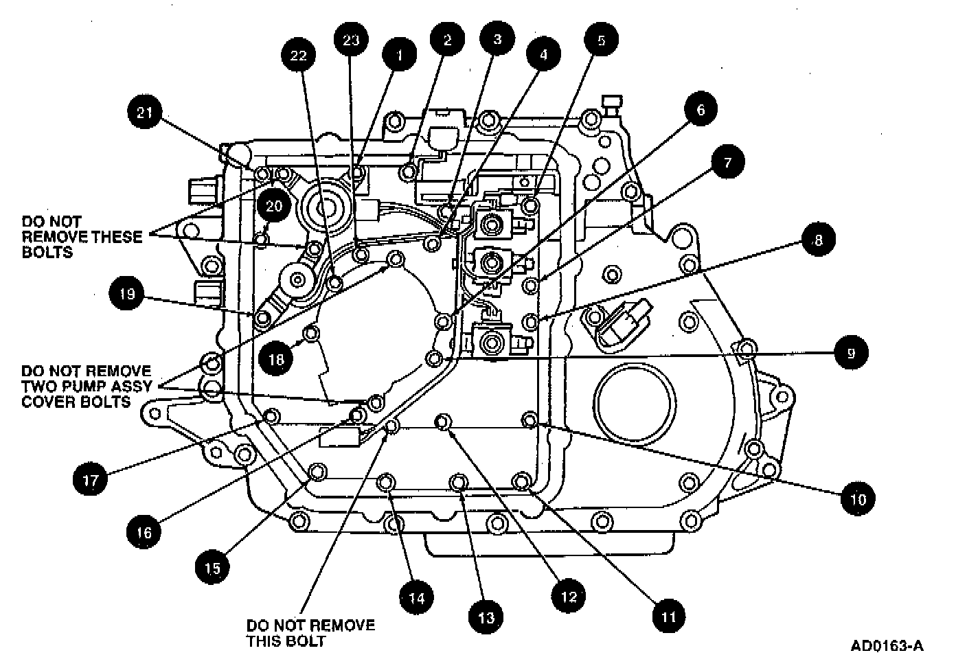 ^ Tighten Valve Body bolts to 9-12 Nm (80-106 inch lbs.) in sequence shown.