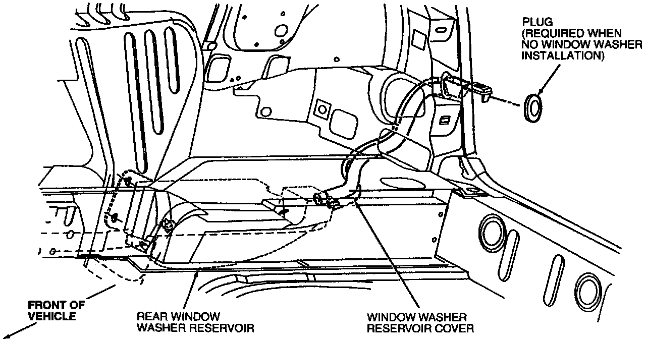 NOTE: Fill the rear window washer reservoir slowly so air will not become trapped causing the windshield washer reservoir to overflow.