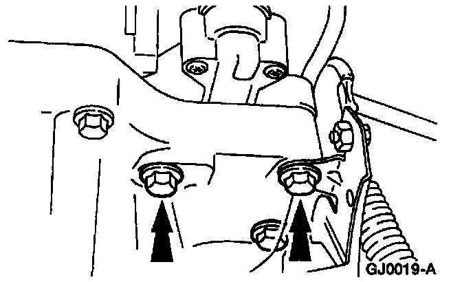 3. Remove the top two starter motor bolts.