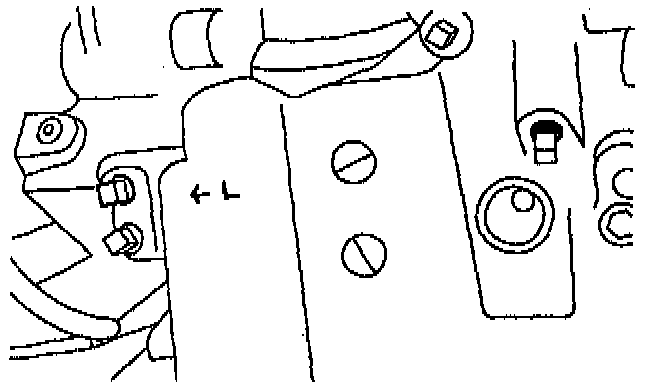 1. Remove the square head plug "L" and install Transmission Test Adaptor D87C-77000-A or equivalent and Pressure Gauge T57L-77820-A.