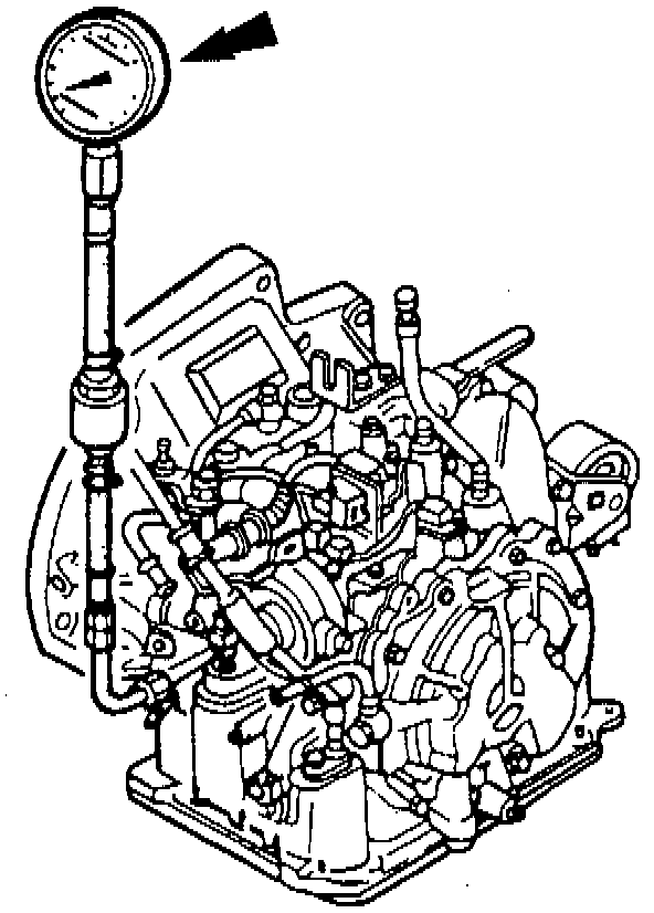12. Restart the engine and press the accelerator slightly, then run the engine at idle. Verify that line pressure is within the specification. If incorrect, repeat the procedure, beginning with step 4.