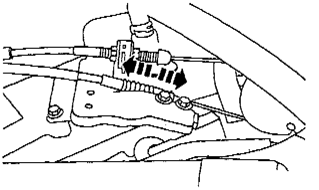 8. Push the throttle cable conduit in the direction of arrow B until the line pressure decreases to the adjustment pressure of 490 kPa (71 psi) with engine at idle.