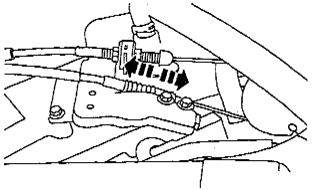 7. Pull the throttle cable conduit in the direction of arrow A until the line slightly exceeds the specified pressure.
