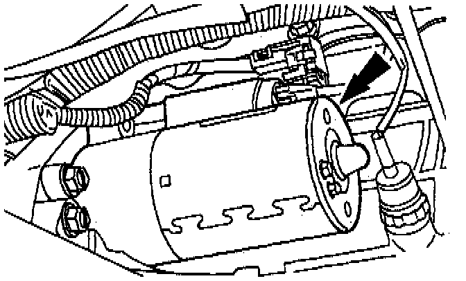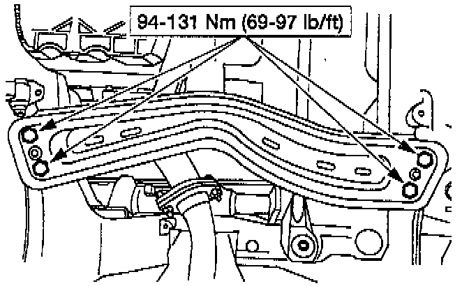 - Connect the A/C line to the retainer located on the front of the engine support crossmember.