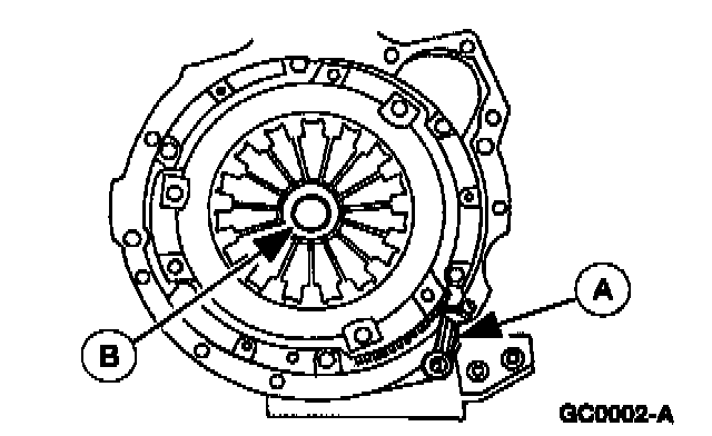NOTE: If the parts are to be reused, mark the clutch pressure plate and flywheel.