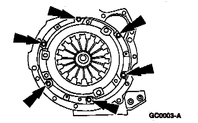 CAUTION: Loosen bolts evenly to prevent pressure plate damage