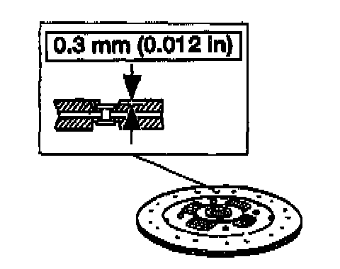 7. Use a slide caliper and measure the depth to the rivet heads. Replace the clutch disc if any rivet head measurement is not within specifications.