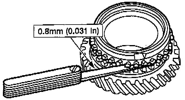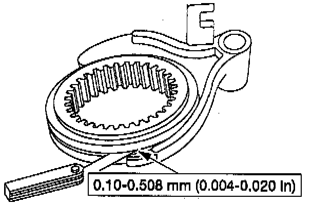 11. Inspect the clearance between the third/fourth synchronizer hub and its shift fork.