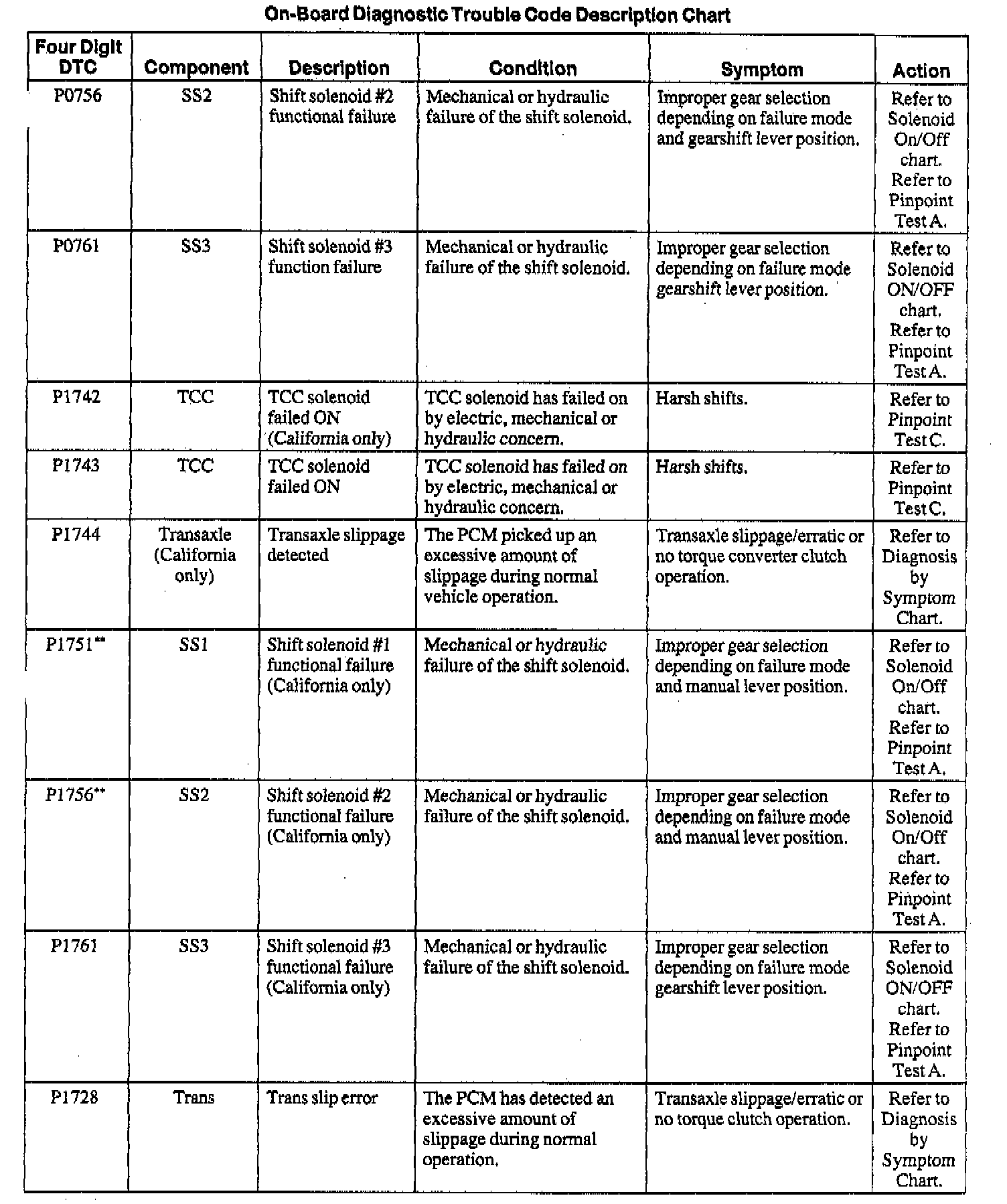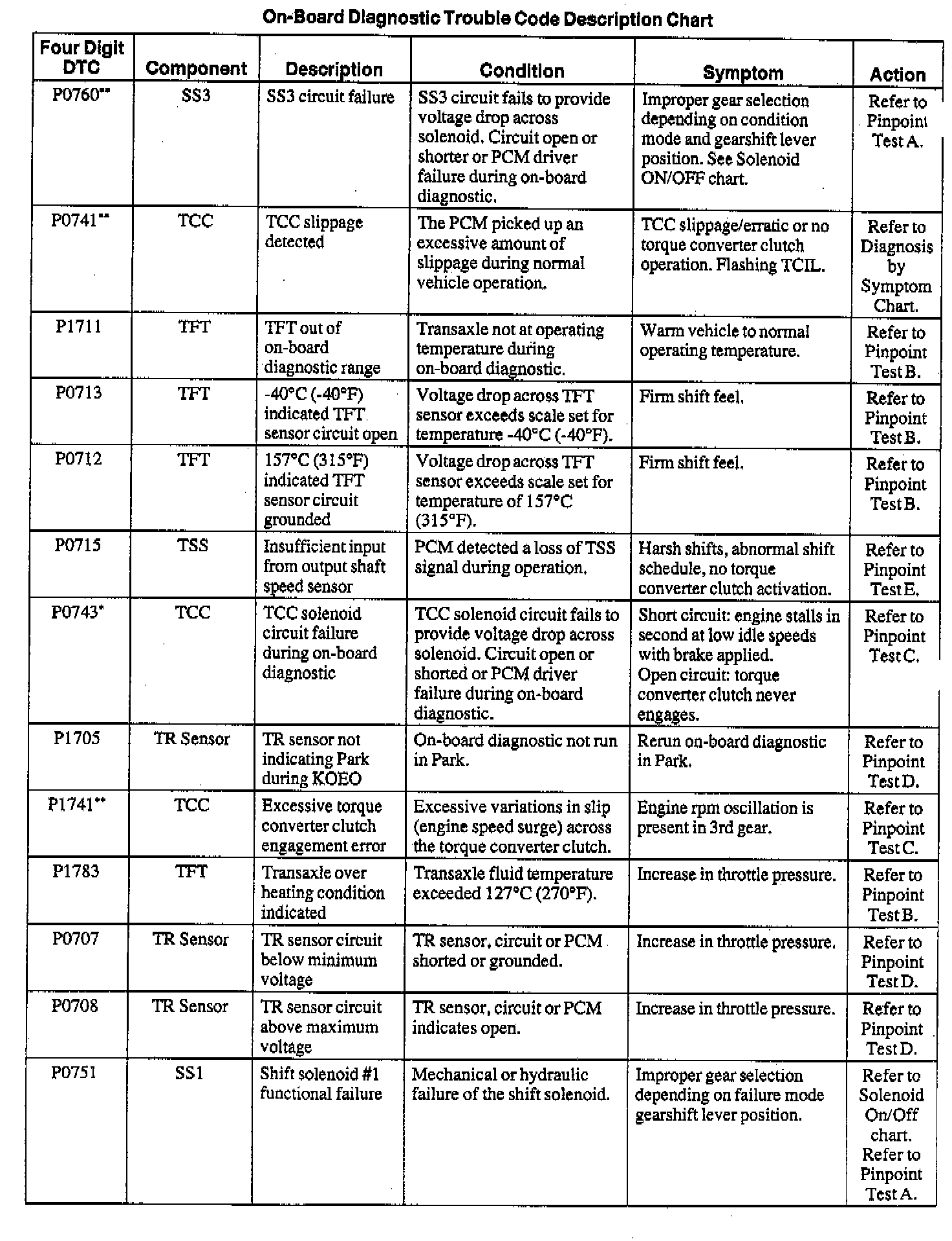 NOTE: When a DTC action contains a reference to Powertrain Management, go to the DTC index under Powertrain Management/Computers and Control Systems/System Diagnosis and follow the pinpoint test instructions for that DTC. Testing and Inspection