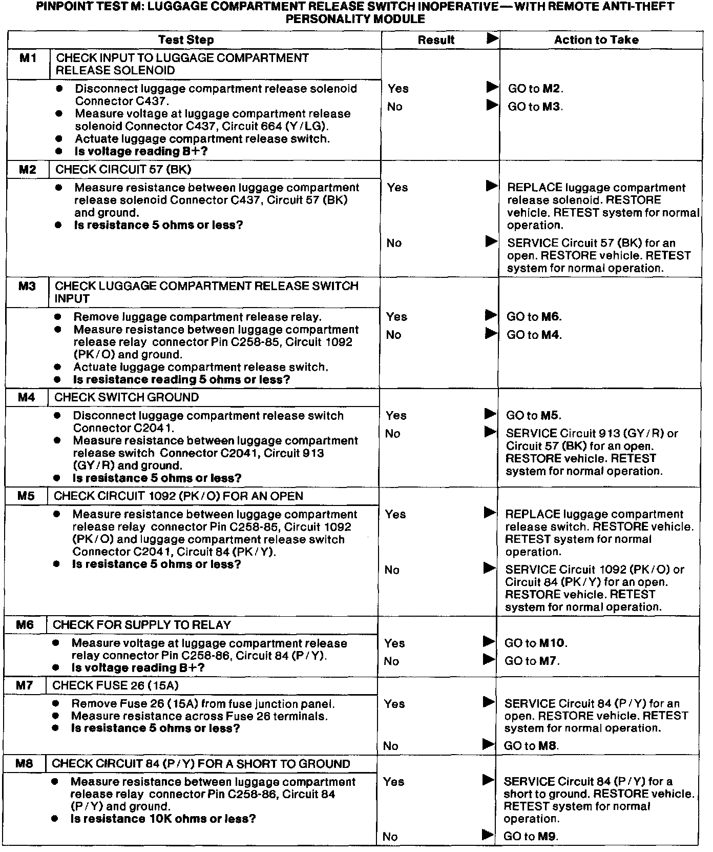 M: Luggage Cmptmt Release Switch Inop With RAP Module
