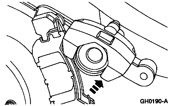 6. Pivot the rear disc brake caliper on the rear disc support bracket.