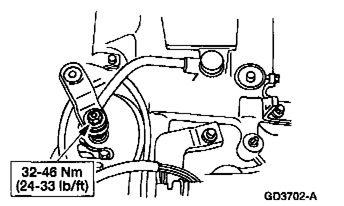 7. Install the shift cable and bracket and nut to specification.