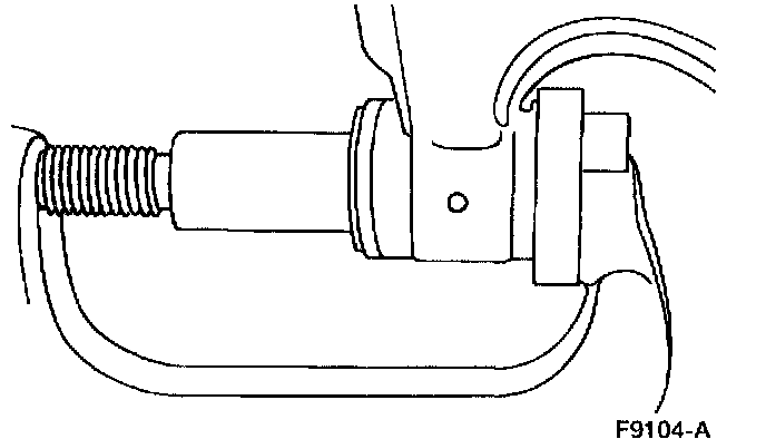 3. Use Lower Control Arm Bushing Tool T81P-5493-B and C-Frame and Clamp Assembly T74P-3044-A1 to remove the front suspension lower arm mounting bolt bushing (front).