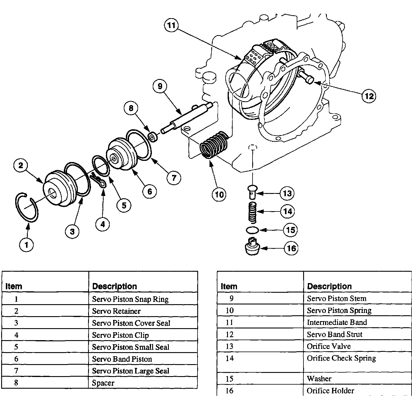 ^ Inspect the servo band piston for damage or wear.