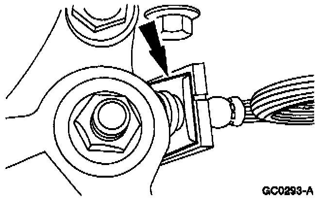 18. Remove the gearshift stabilizer bar to transaxle nut.