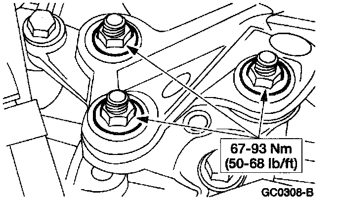 27. Remove the three remaining transaxle to engine bolts.