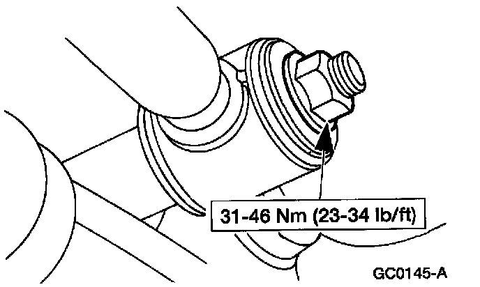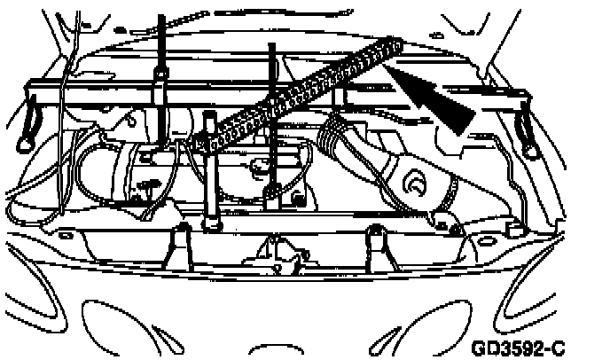NOTE: Disconnect the A/C line from the retainer located on the front of the engine support crossmember.
