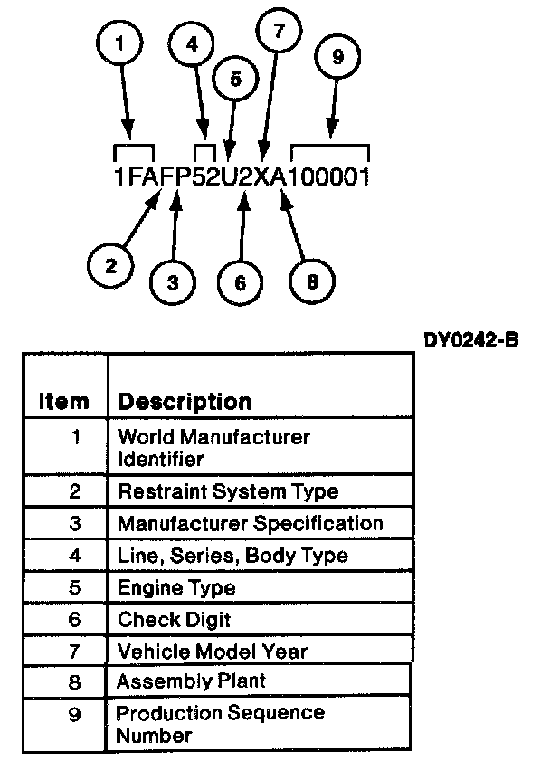 The Vehicle Identification Number (VIN) is a 17-character alpha-numeric vehicle identification number. This number is used for warranty identification of the vehicle and indicates the following: