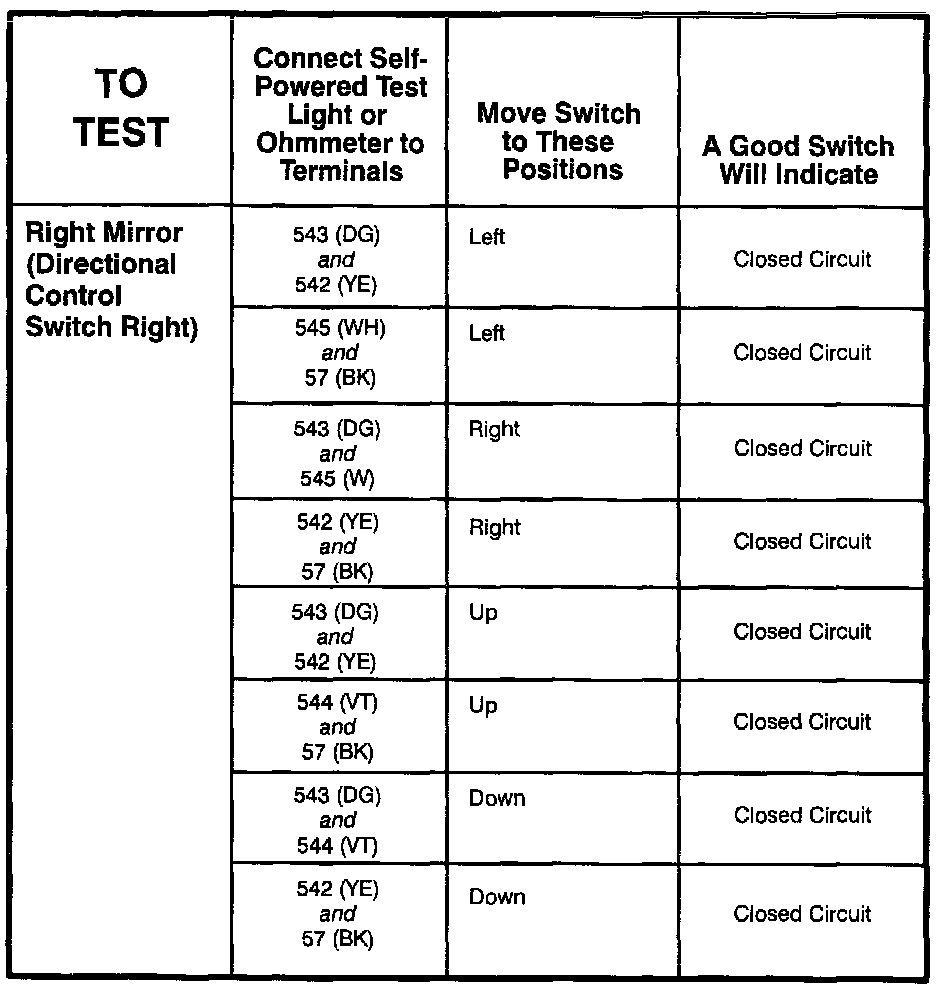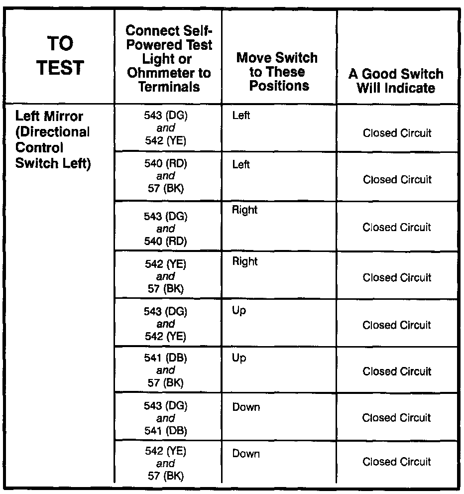 Power Mirror Switch: Testing and Inspection