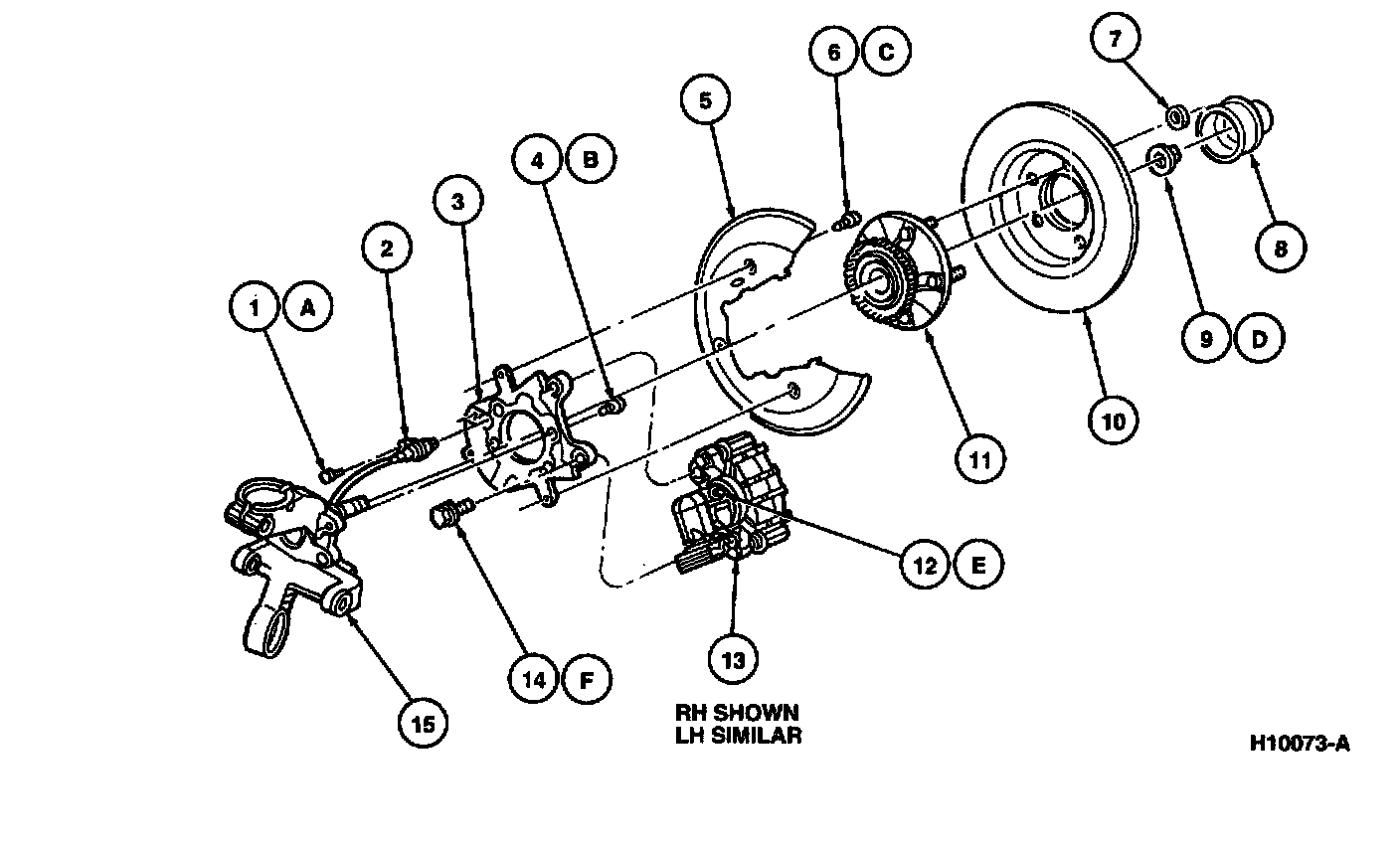 1. Remove rear disc brake rotor and rear disc brake caliper.