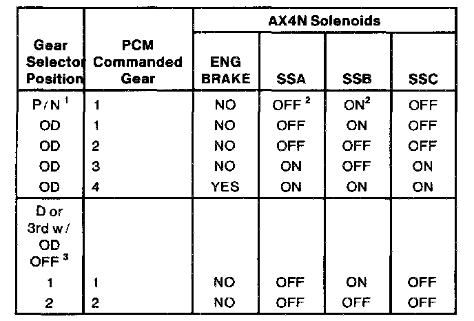 Shift Solenoid Operation Chart