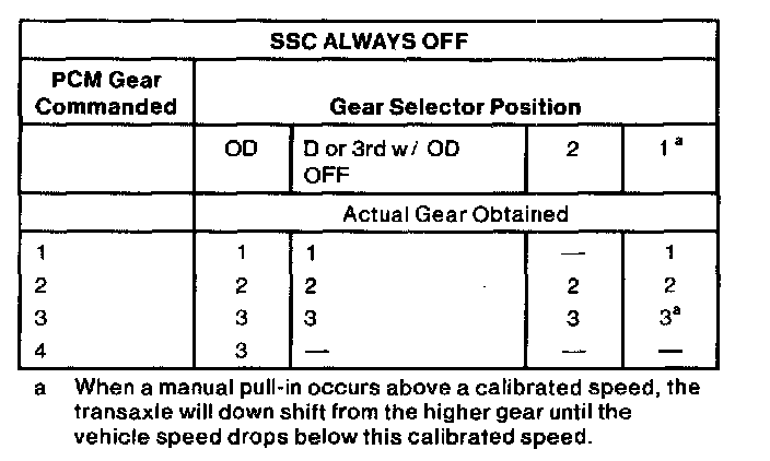 4. When a manual pull-in occurs above a calibrated speed the transmission will not downshift from the higher gear until the vehicle speed drops below the calibrated speed.