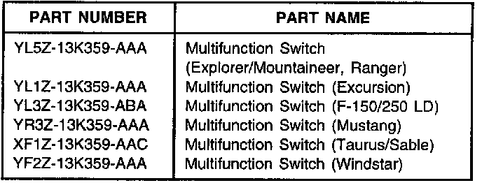 Refer to the Multifunction Switch Application Chart for the applicable switch.