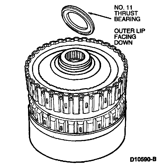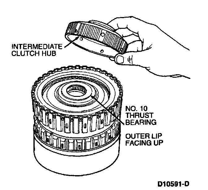 10. Install intermediate clutch hub with No. 10 needle bearing. Make sure hub is fully seated.