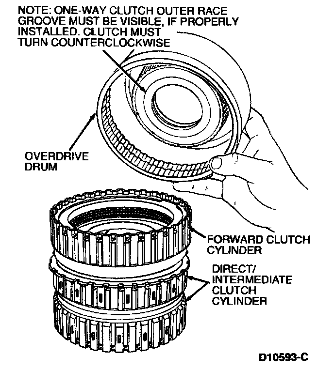 7. Install overdrive drum and one-way clutch assembly. Make sure overdrive drum is fully seated.
