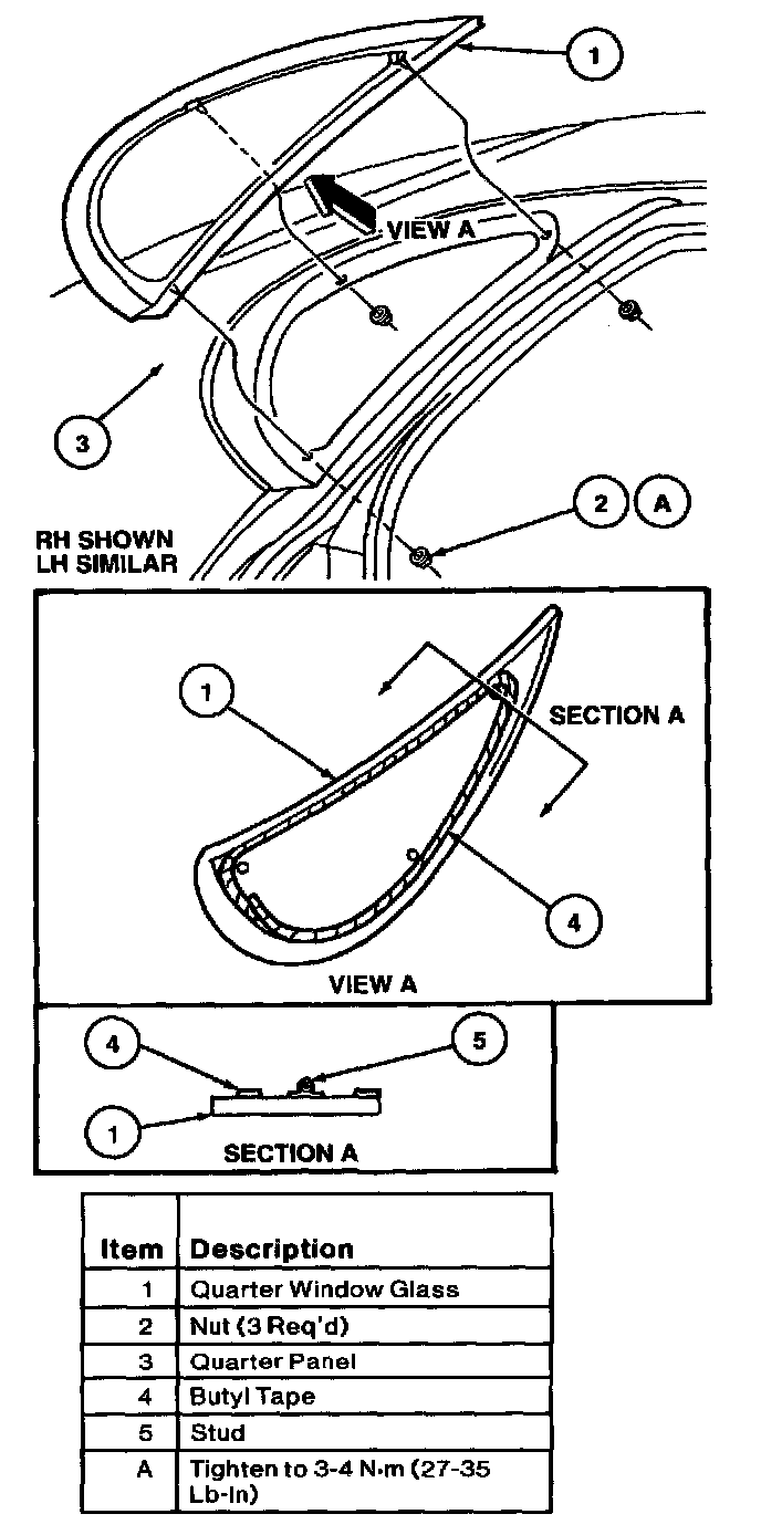 4. NOTE: It the window Butyl Tape has been damaged, replace with new seal assembly.