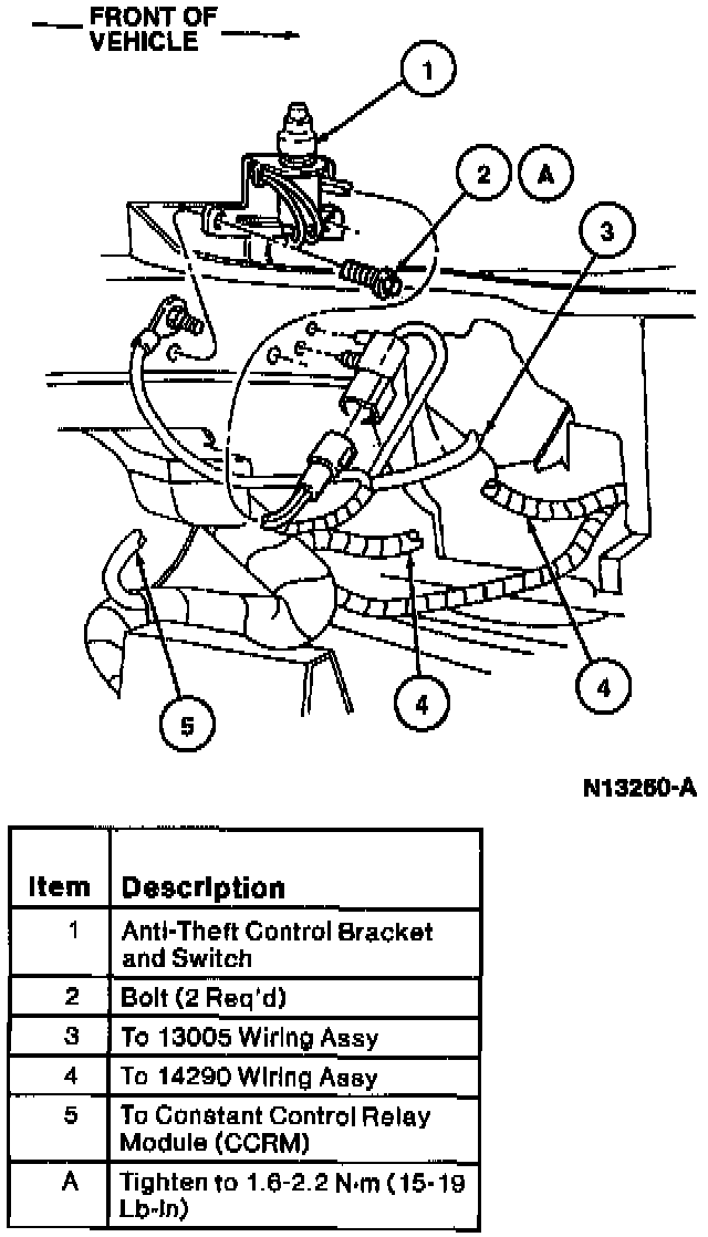 2. Make sure hood anti-theft control bracket and switch locator leg is seated firmly when driving screw to retain hood anti-theft control bracket and switch. Tighten screws to 1.6-2.2 N.m (15-19 Lb-In).