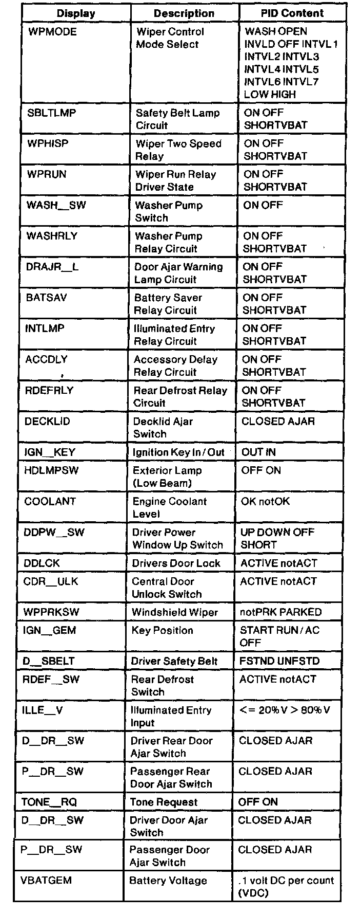 Diagnostic Trouble Code Descriptions