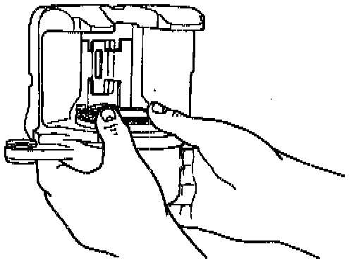 2. Disconnect the disc brake caliper from the hydraulic system, then apply air pressure to the fluid port in the disc brake caliper with Rubber-Tipped Air Gun 100-D009 (D93L-7000-A) or equivalent to remove caliper piston. If piston is seized and cannot be forced from the disc brake caliper, the disc brake caliper must be replaced.