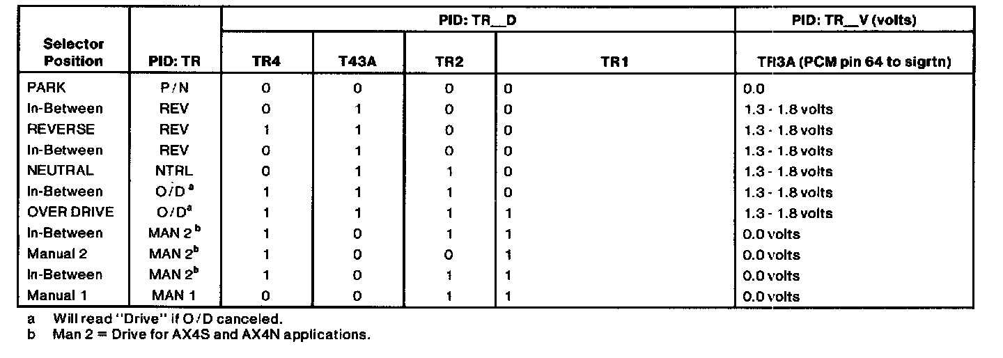 Digital Transmission Range (TR) Sensor Diagnosis Chart: