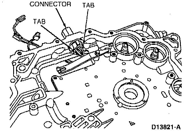 If wiring or chain cover replacement is necessary, compress tabs on both sides of connector from inside of chain cover. Pull connector and harness out of chain cover.