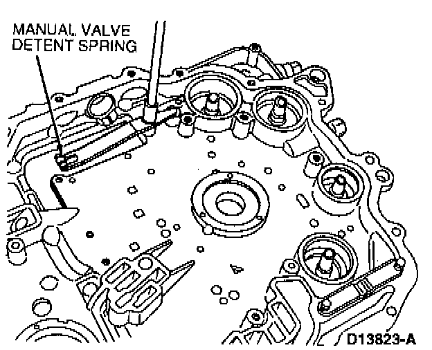 10. Install manual valve detent spring. Tighten retaining bolt to 9-12 Nm (80-106 inch lbs.).