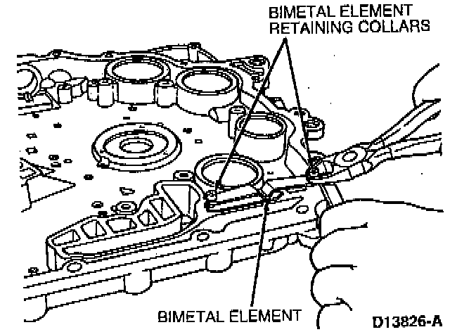 IF NECESSARY, use side cutters supported by a small piece of wood to carefully remove bimetal element retaining collars. Remove bimetal element and thermostat plate.