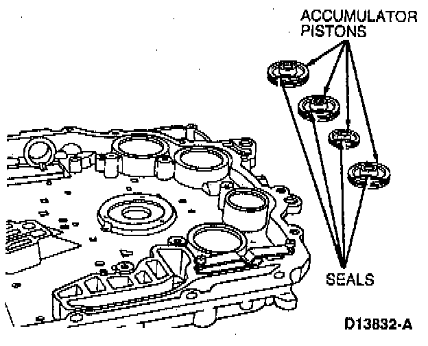 Remove four accumulator pistons. Remove and discard four seals from pistons.