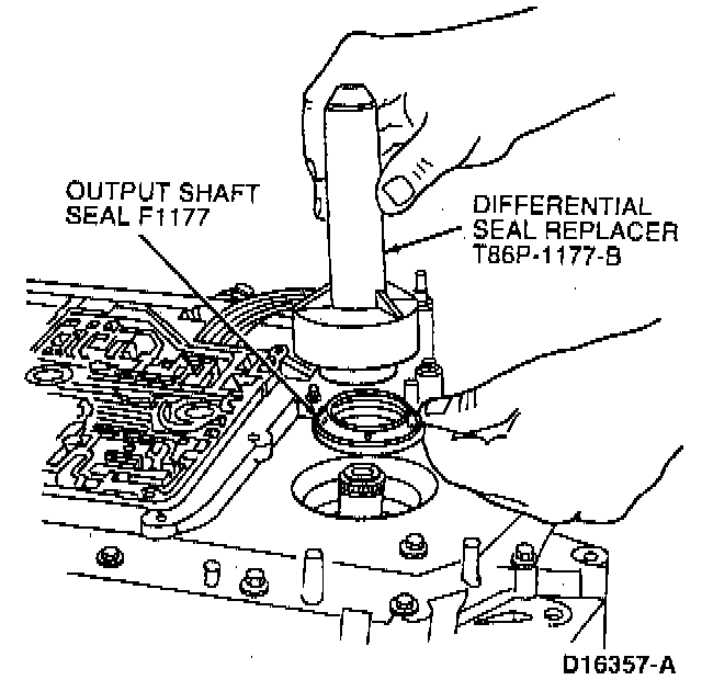 57. Install LH output shaft seal using Differential Seal Replacer 307-157 (T86P-1177-B).