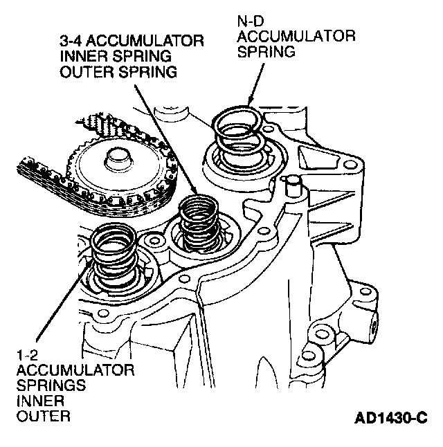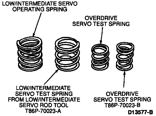 70. CAUTION: The test spring from the Low/Intermediate Servo Rod Tool is plain in color and has a thinner wire diameter than the operational spring. Extreme care must be used not to assemble the transaxle using the test spring.